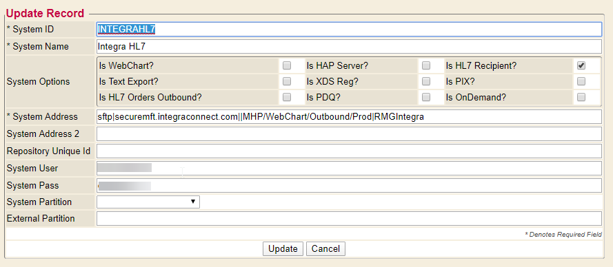 - System Address - This is the end point information. This can be a URL, Filename, SFTP, among others.